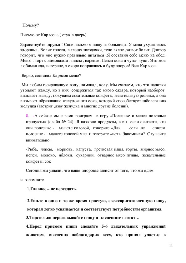 8. А сейчас мы с вами поиграем в игру «Полезные и менее полезные