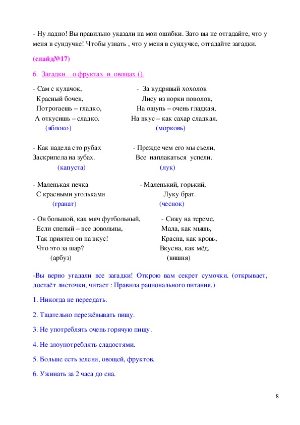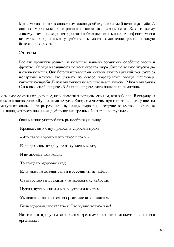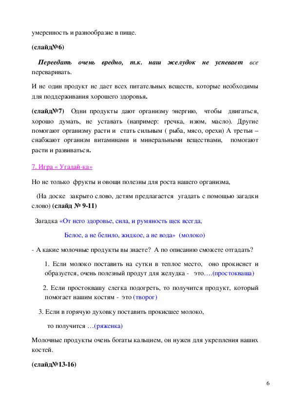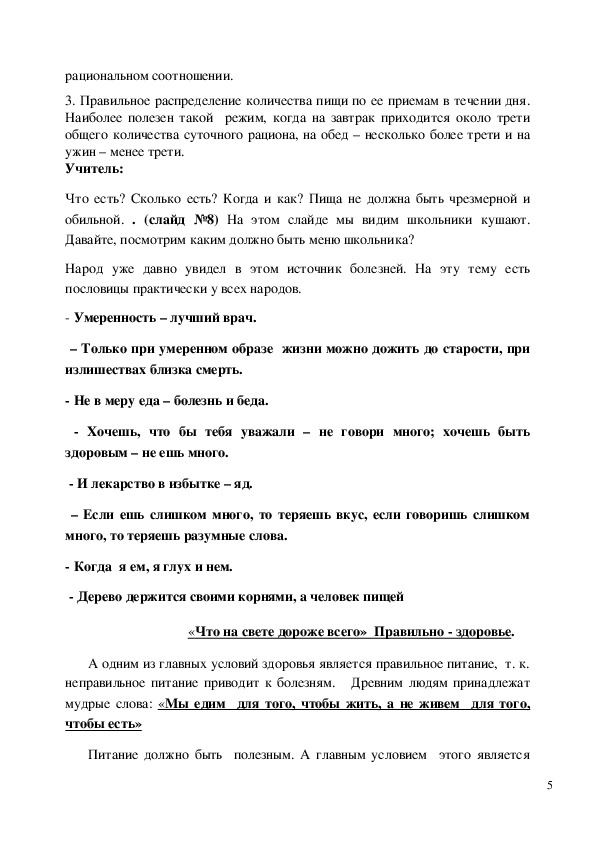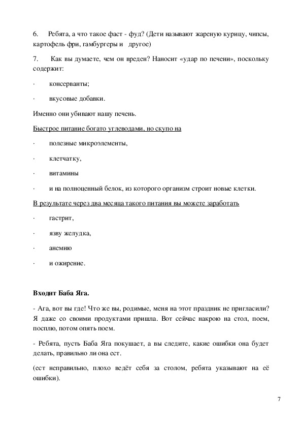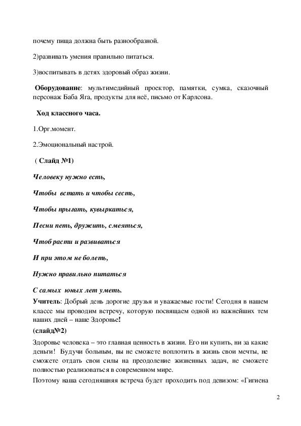 1)формирования у учащихся представления о здоровом питании, рассказать