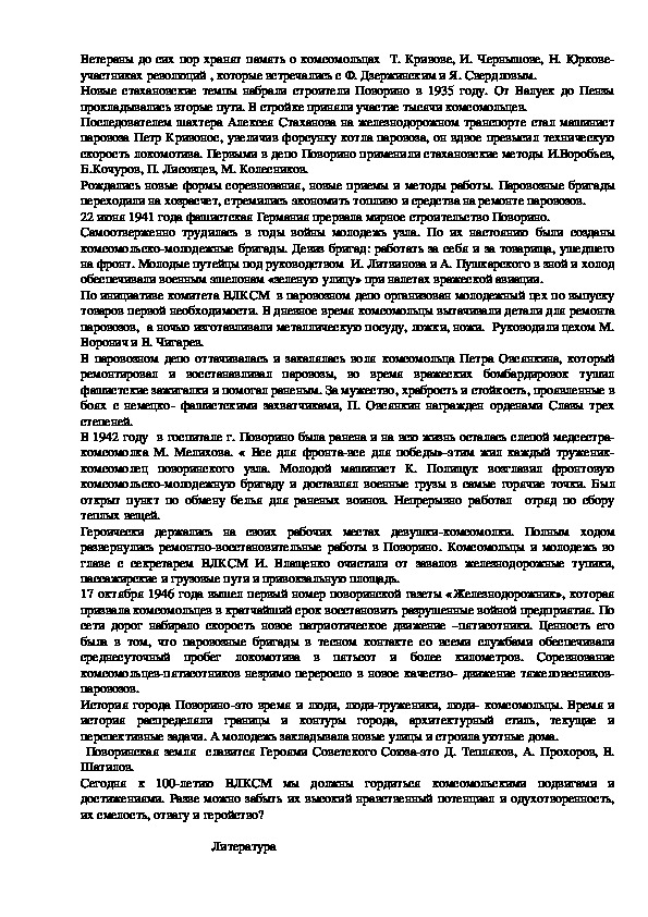 История города Повориноэто время и люди, людитруженики, люди комсомольцы. Время и