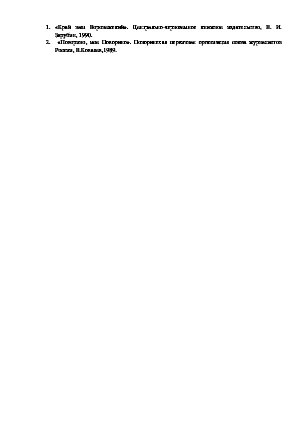Литература1. «Край наш Воронежский». Центральночерноземное книжное издательство, В. И.