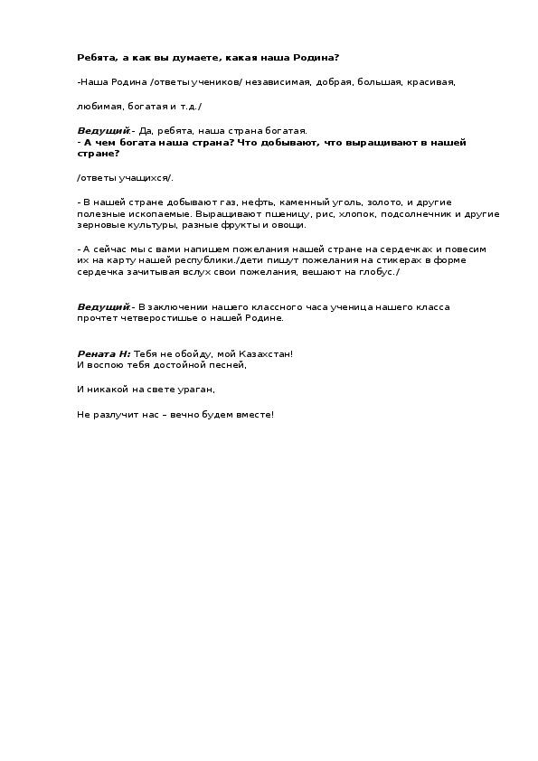 (- Наш классный час посвящен дню независимости нашей Республики.)