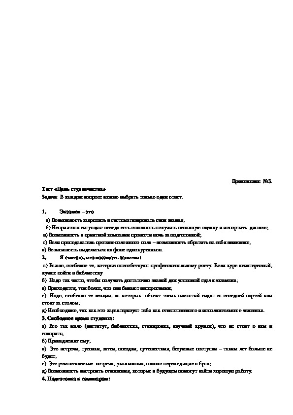 Далее установить цели студенчества на основе выполнения тестов. Нужно выбрать ответы,