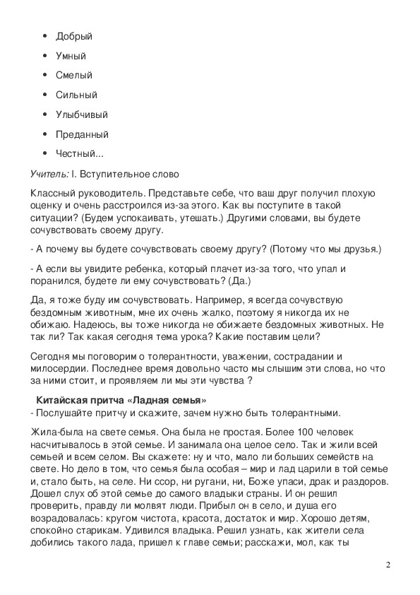 отзывчивости и сострадания к человеку. Воспитание толерантного
