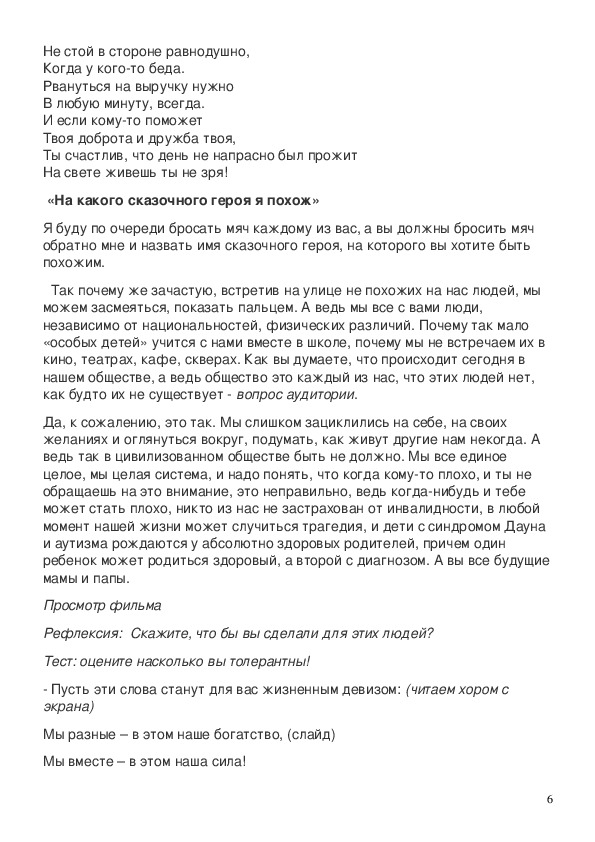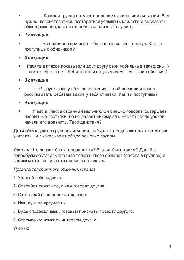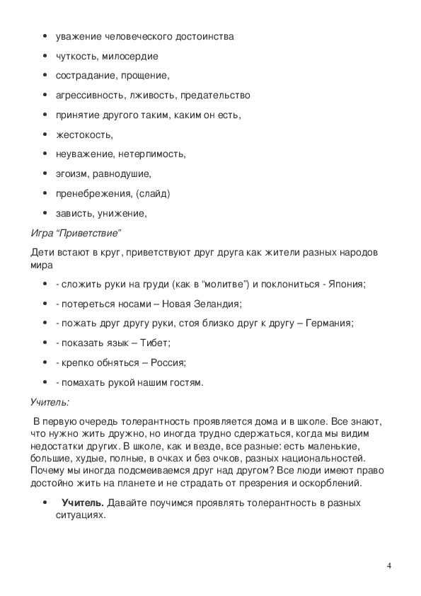 Учитель. Давайте поучимся проявлять толерантность в разных