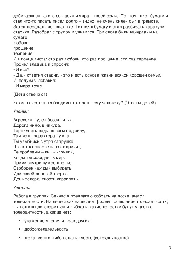 Учитель: Что значит быть толерантным? Значит быть каким? Давайте
