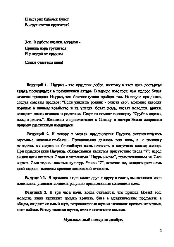 Ведущий 2. Слово Наурыз персидского происхождения обозначает ”Новый