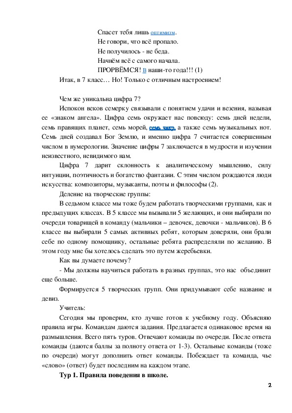 Классный час "Первый раз в седьмой класс" 7 класс.
