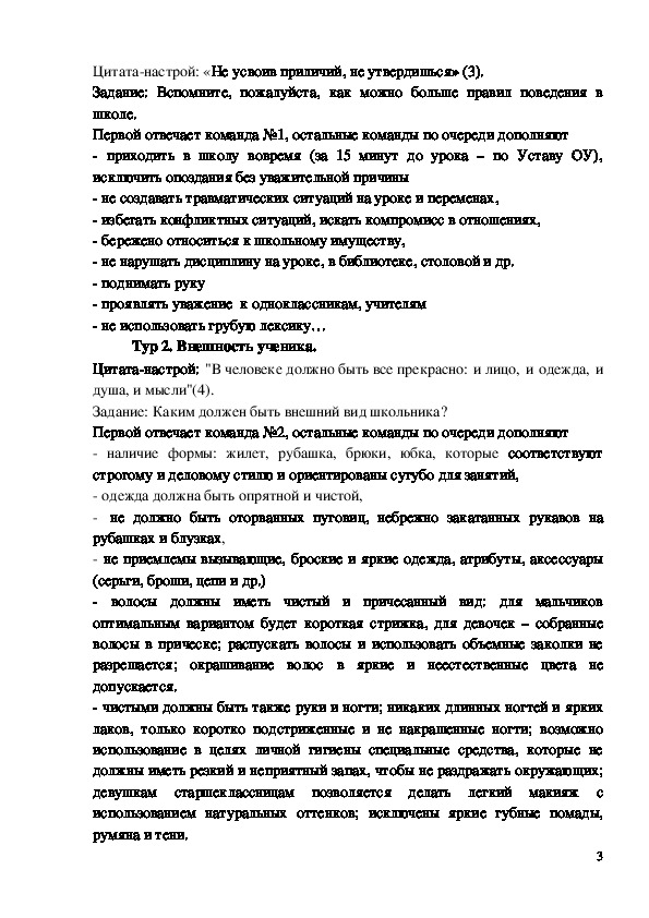 Тур 1. Правила поведения в школе.