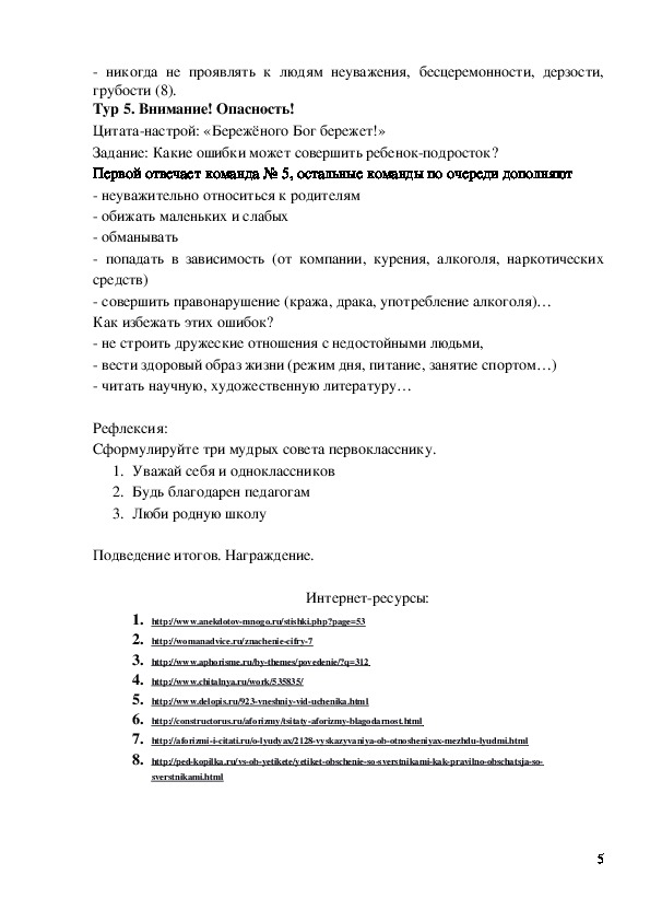 Тур 5. Внимание! Опасность!