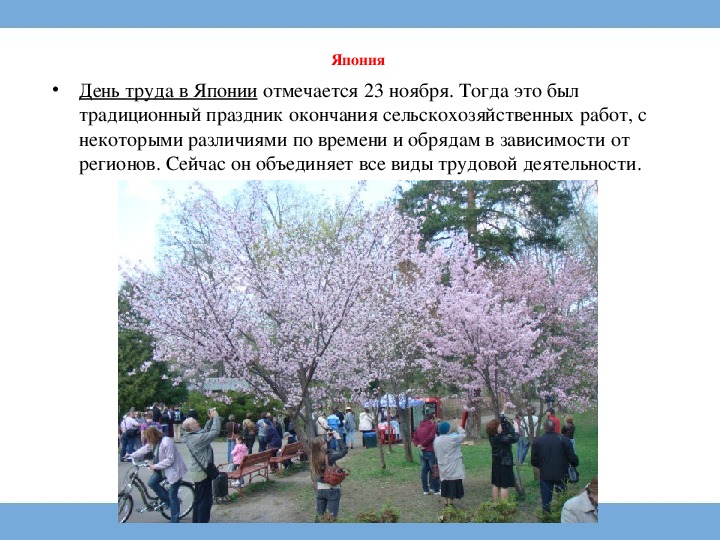 • День труда в Японии отмечается 23 ноября. Тогда это был