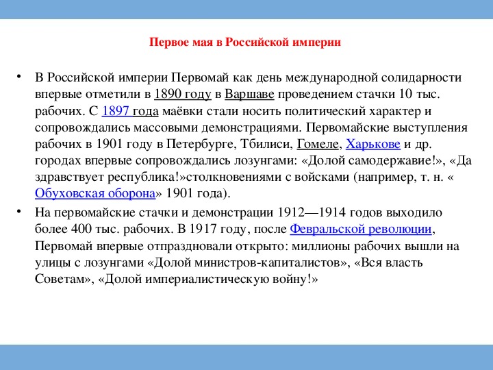 • В Российской империи Первомай как день международной солидарности