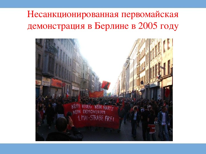 праздники»). Первомай в Берлине известен ожесточёнными