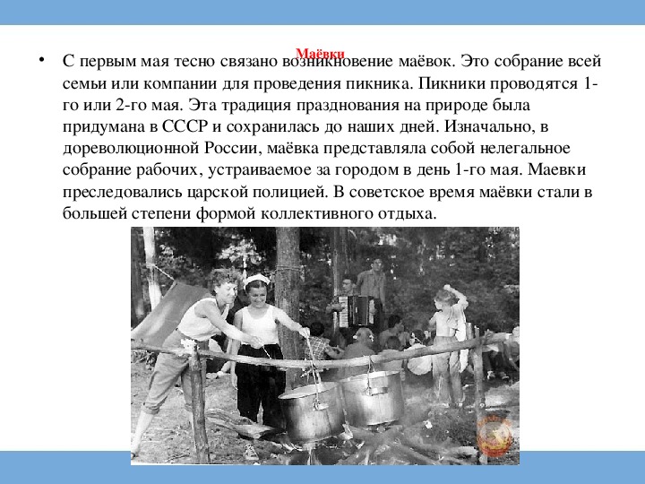 • С первым мая тесно связано возникновение маёвок. Это собрание всей