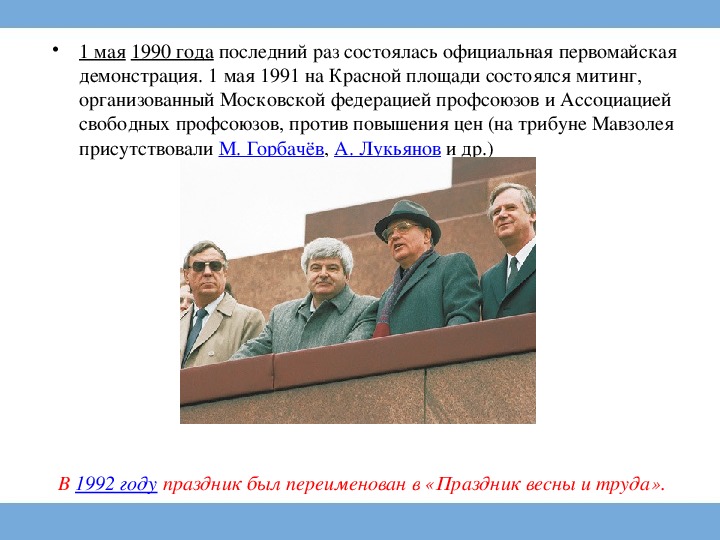 Празднование Дня труда отменено с 1996го года.