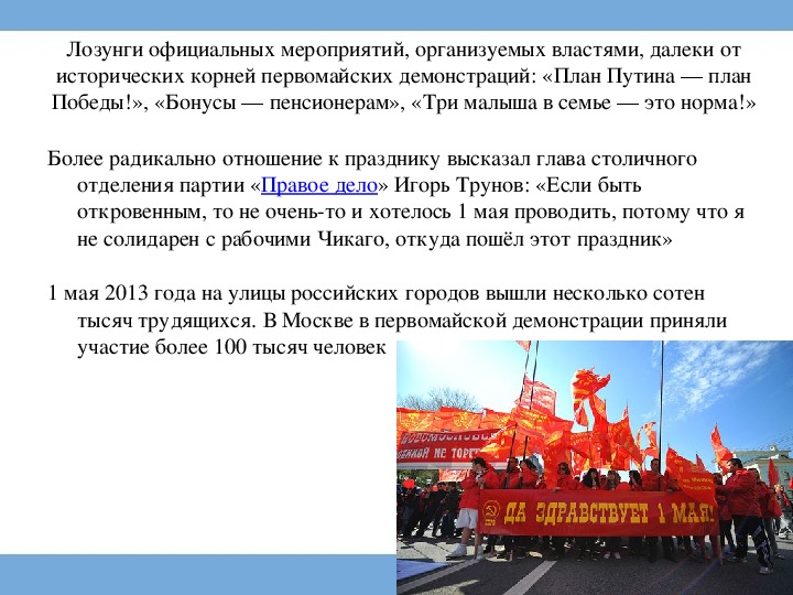 исторических корней первомайских демонстраций: «План Путина — план