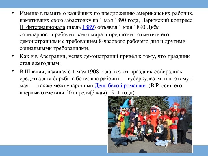 II Интернационала (июль 1889) объявил 1 мая 1890 Днём