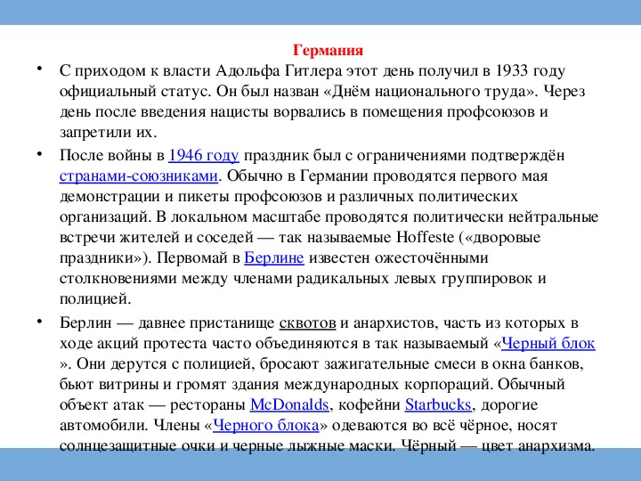 странамисоюзниками. Обычно в Германии проводятся первого мая