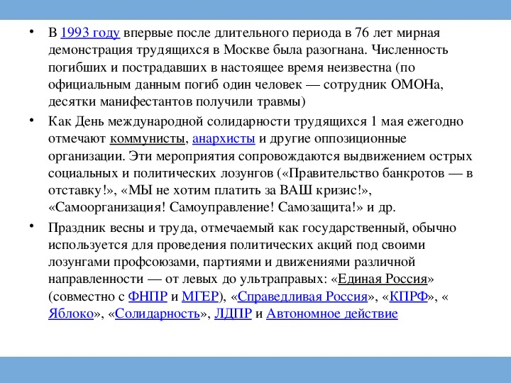не солидарен с рабочими Чикаго, откуда пошёл этот праздник»
