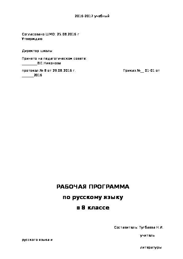 Согласовано ШМО: 25.08.2016 г