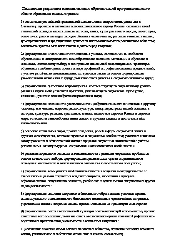 Планируемые результаты освоения учебного курсаЛичностные результаты освоения основной образовательной программы основного