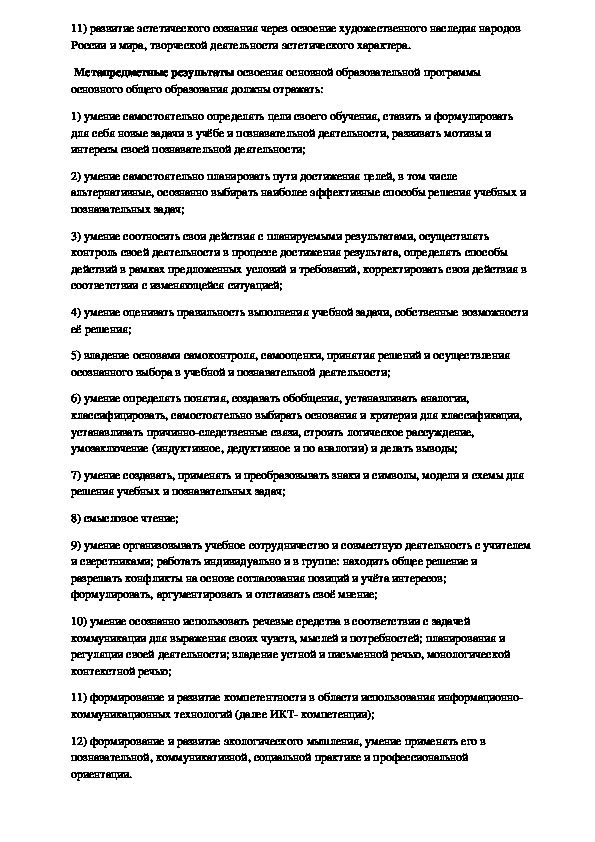 жизни, уважительное и заботливое отношение к членам своей семьи;11) развитие эстетического сознания через освоение художественного наследия народов