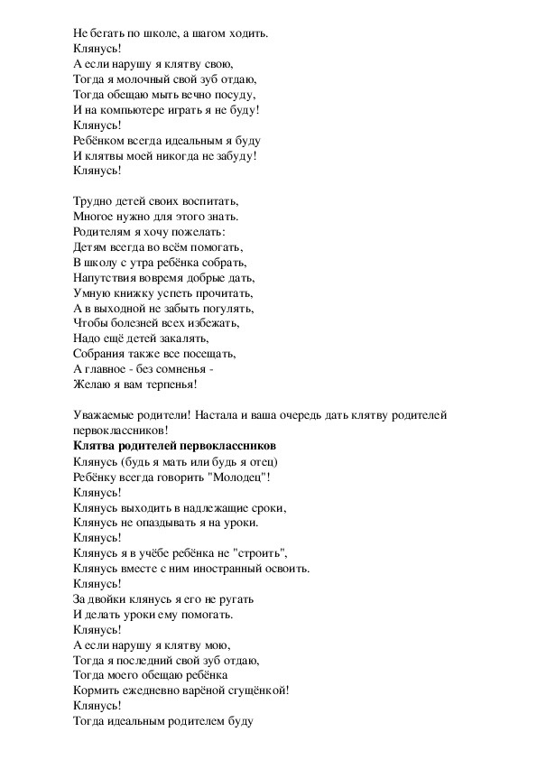 Клятва родителей первоклассников