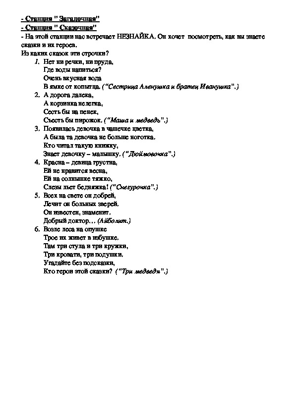 На этой станции нас встречает НЕЗНАЙКА. Он хочет посмотреть, как вы знаете