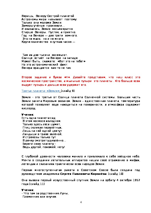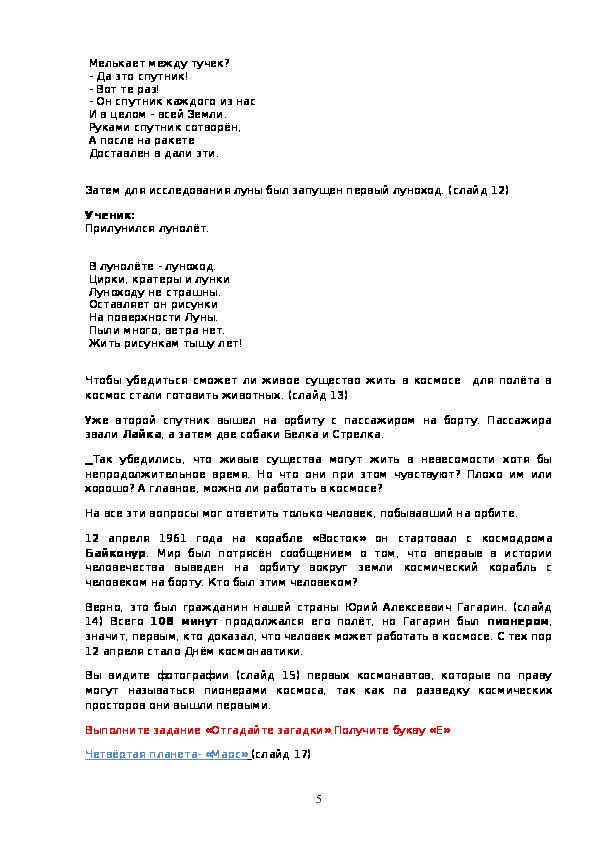 Чтение стихов о космосе, космонавтах. Получаете букву «Е»