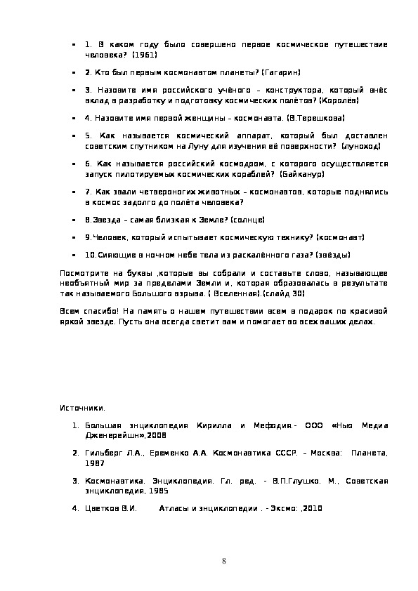 2. Кто был первым космонавтом планеты? (Гагарин)