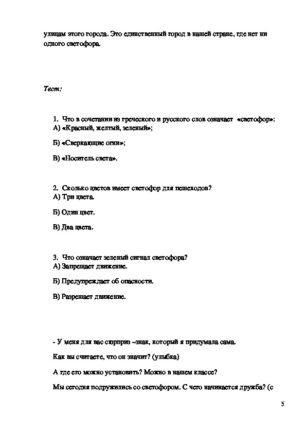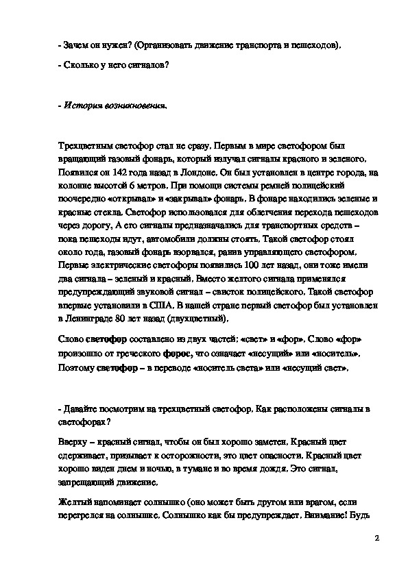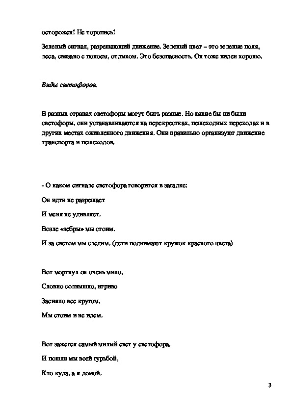 Цели: Расширить знания детей о сигналах светофора, учить их быть