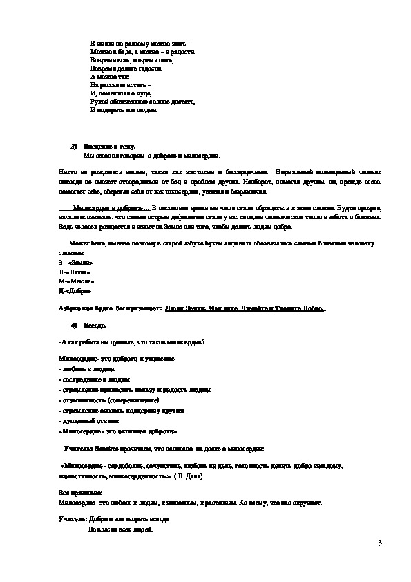 Учитель: Давайте прочитаем, что написано на доске о милосердии: