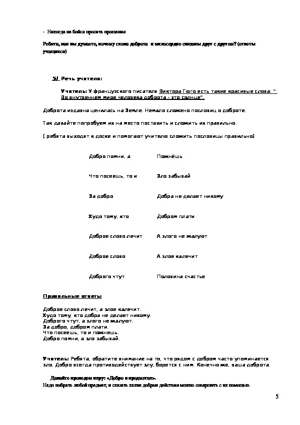 Учитель: Ребята, обратите внимание на то, что рядом с добром часто упоминается