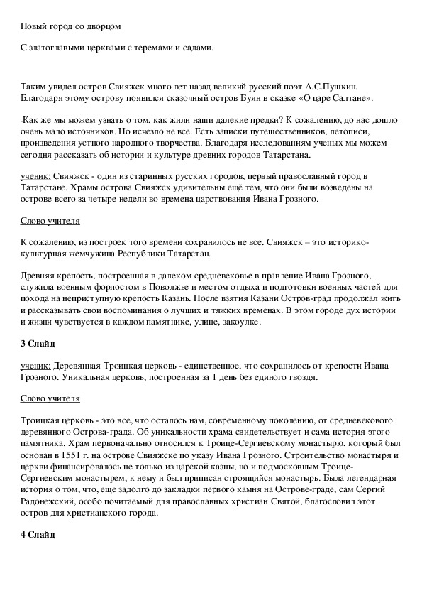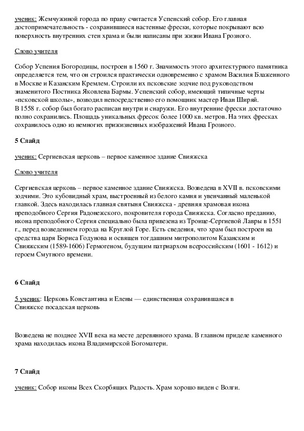 ученик: Свияжск один из старинных русских городов, первый православный город в