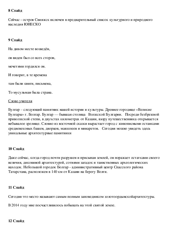 Тема: «Булгар и Свияжск – памятники истории и культуры» (урокпутешествие).