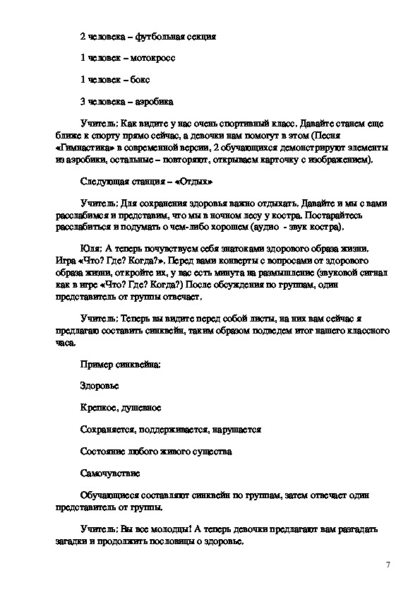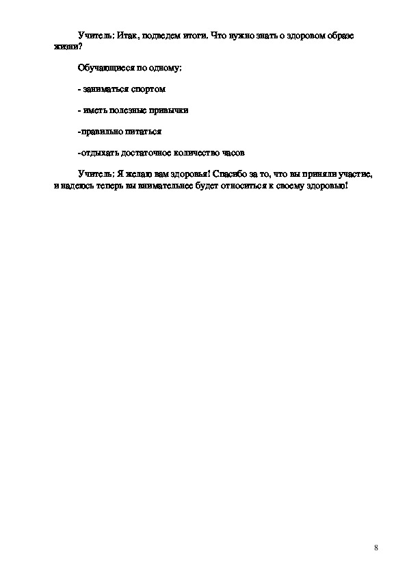 7Учитель: Итак, подведем итоги. Что нужно знать о здоровом образе