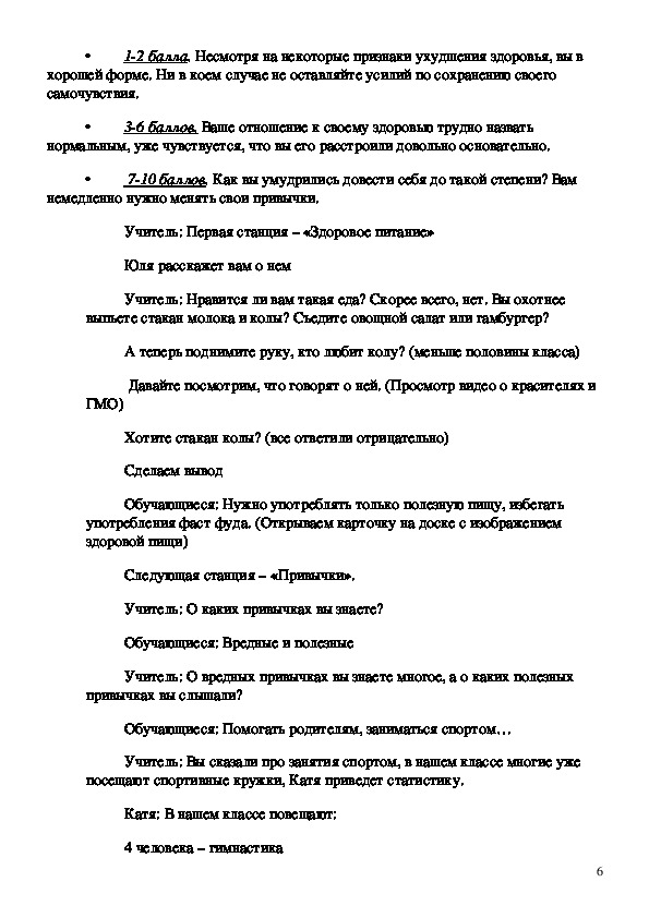 Учитель: Вы сказали про занятия спортом, в нашем классе многие уже
