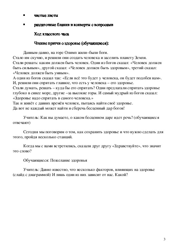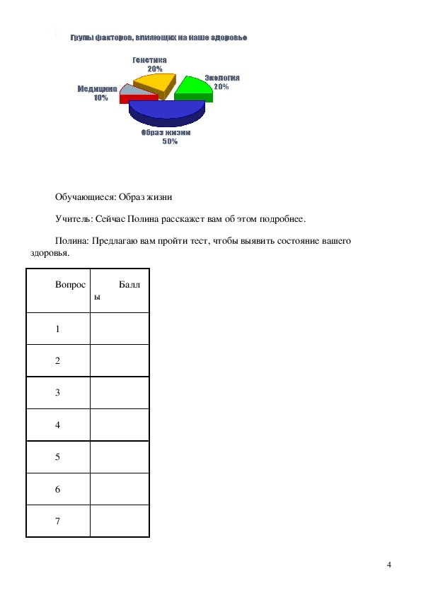 Учитель: Давно известно, что несколько факторов, влияющих на здоровье