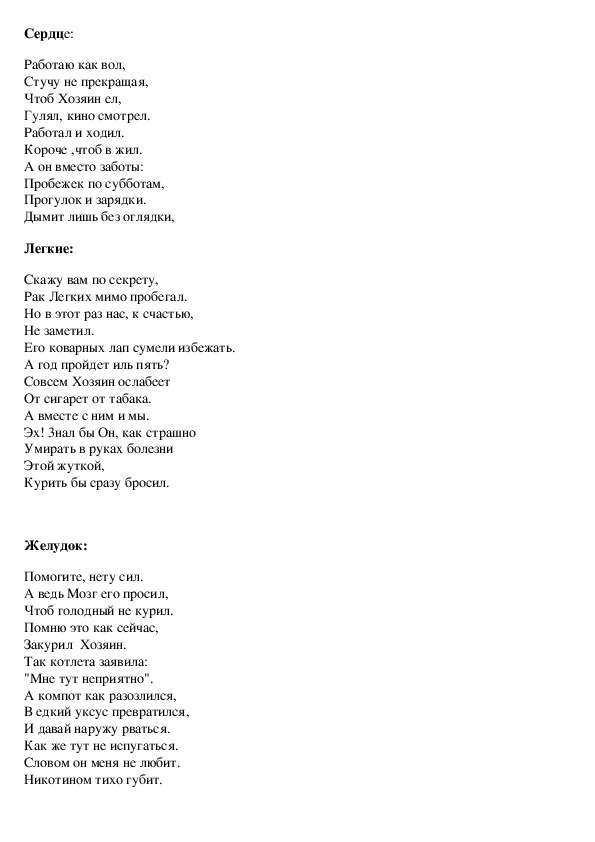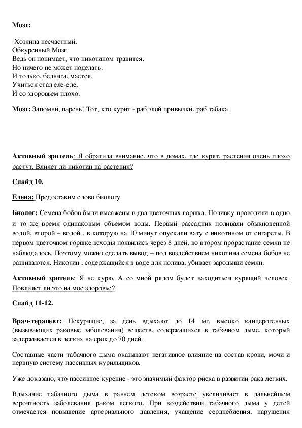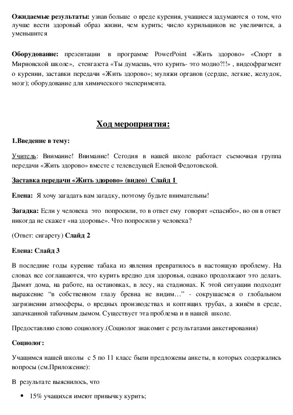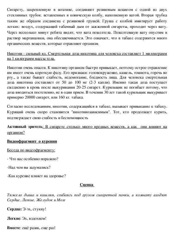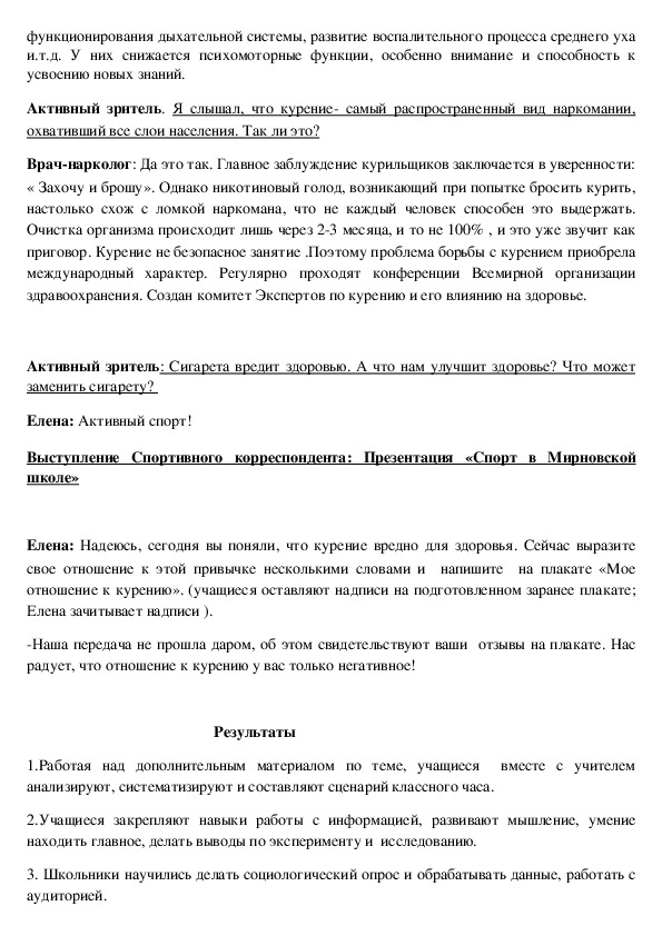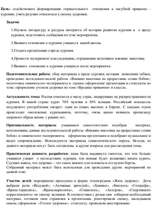 курению, учить разумно относиться к своему здоровью.