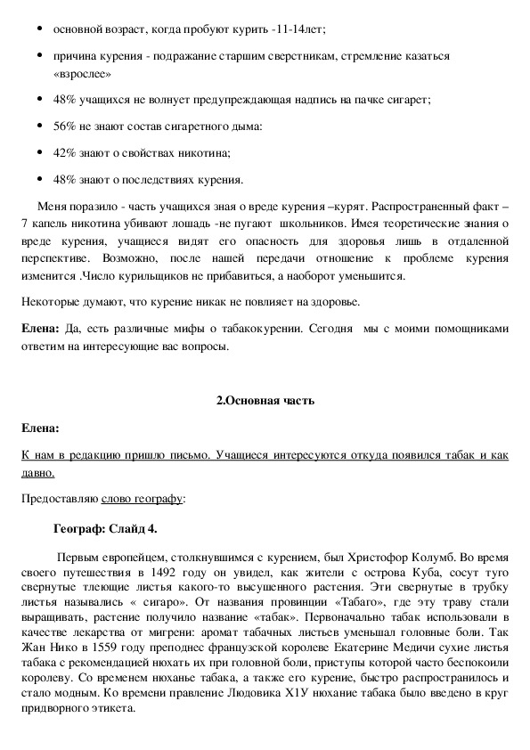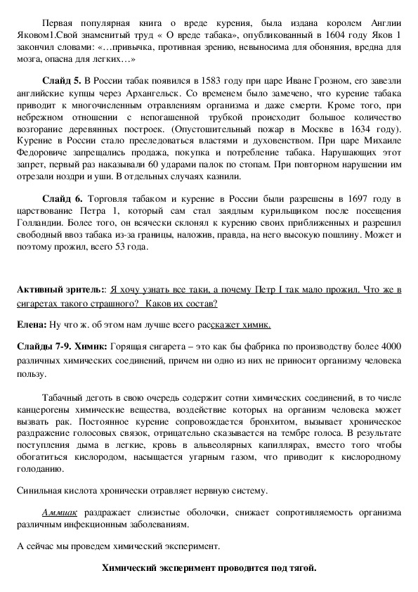 1.Изучить литературу и ресурсы интернета об истории развития курения и о вреде