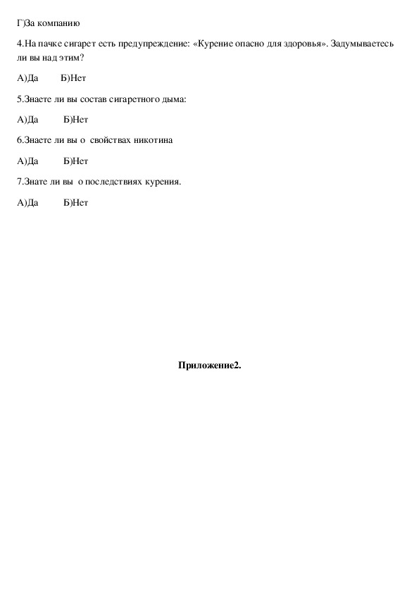 вопросы (см.Приложение):