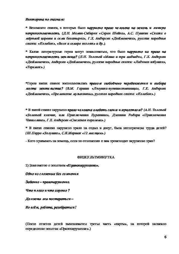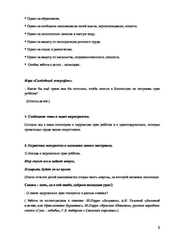 * Вспомните сказки, в которых было нарушено право человека на жизнь и личную