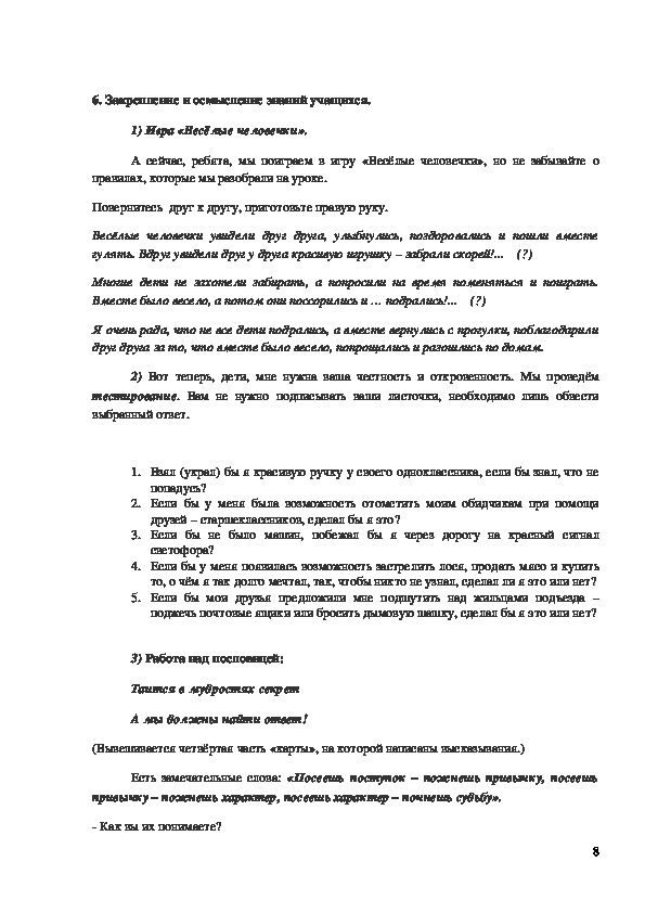2) Вот теперь, дети, мне нужна ваша честность и откровенность. Мы проведём
