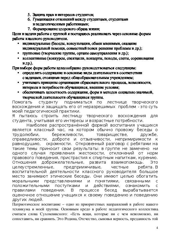 Суть моей работы– помочь студентам стать полноценной личностью. Защитить студента – это значит создать условия для свободного развития его духовных и физических сил.