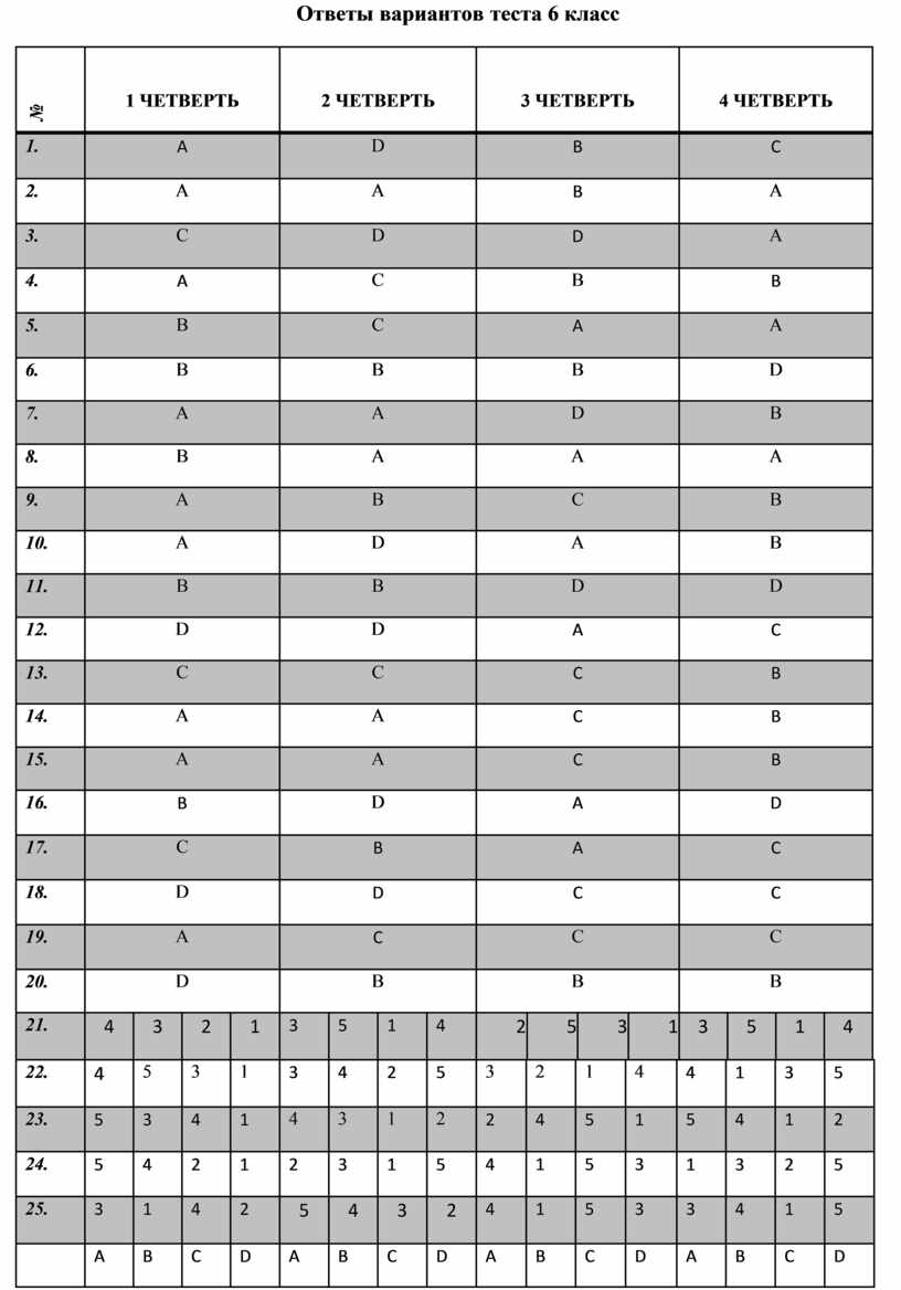 Ответы вариантов теста 6 класс