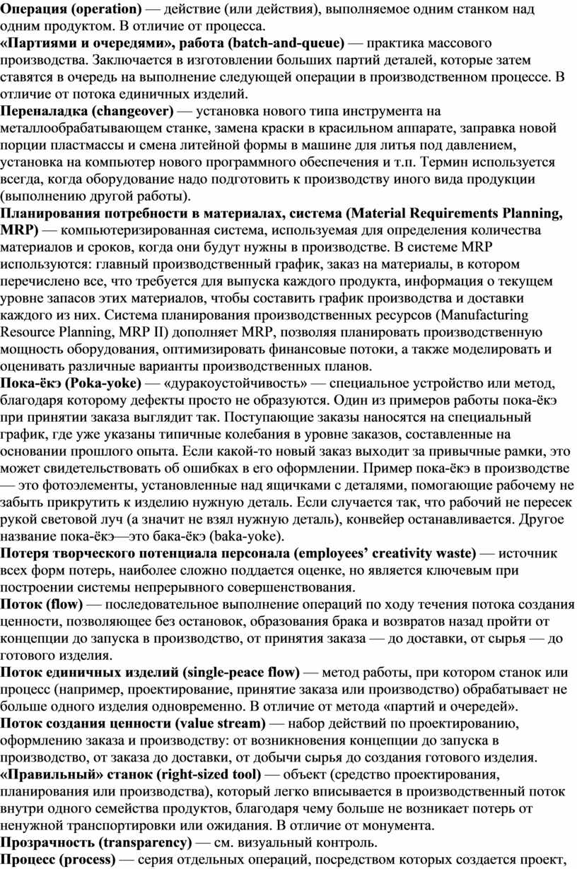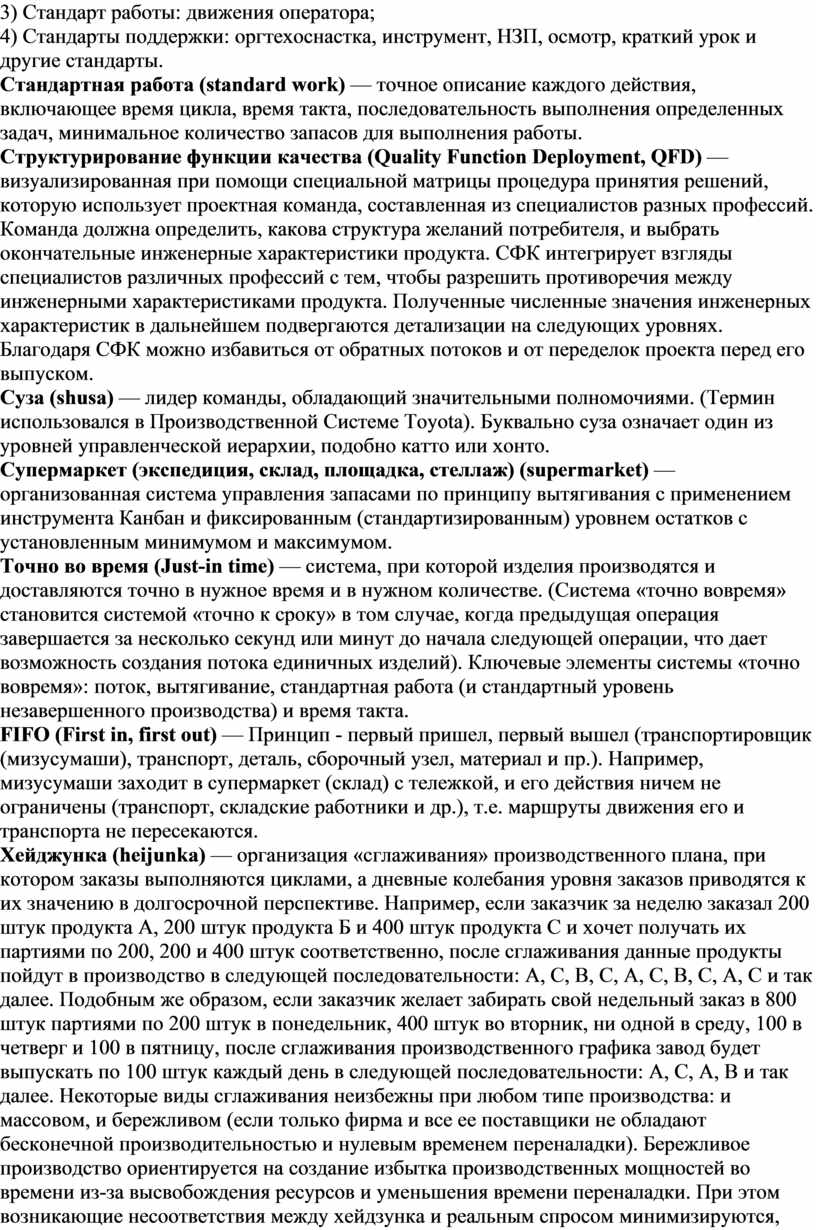 Стандартная работа (standard work) — точное описание каждого