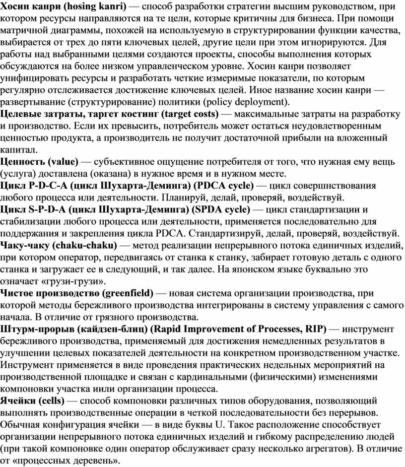 уровне. Хосин канри позволяет унифицировать ресурсы и разработать четкие