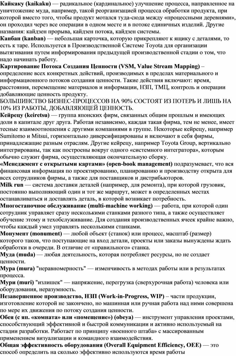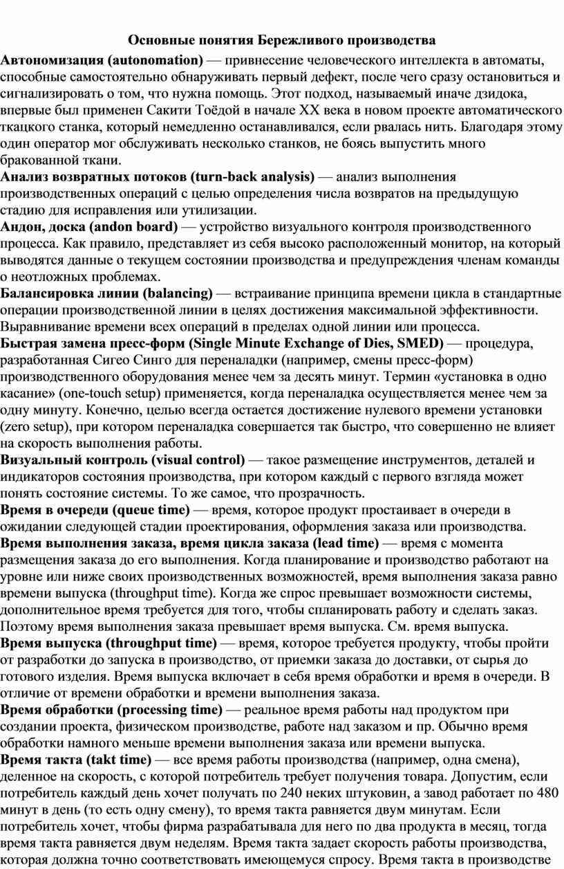 «ОСНОВЫ БЕРЕЖЛИВОГО ПРОИЗВОДСТВА»