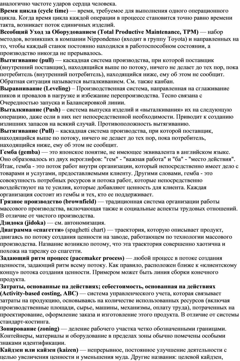 точно соответствовать имеющемуся спросу. Время такта в производстве аналогично