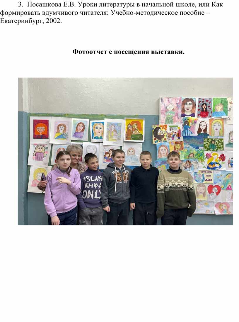 3. Посашкова Е.В. Уроки литературы в начальной школе, или Как формировать вдумчивого читателя: Учебно-методическое пособие – Екатеринбург, 2002.