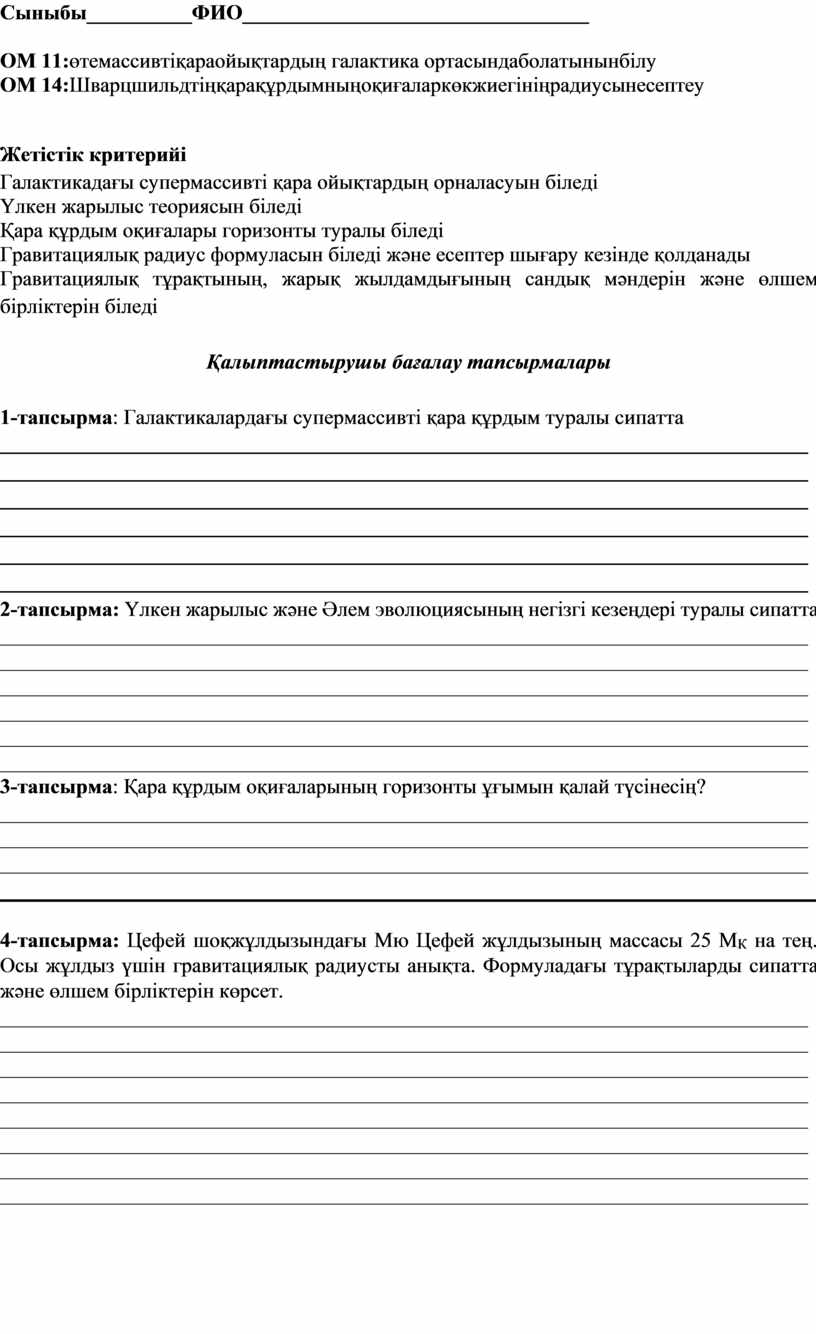 1-тапсырма: Галактикалардағы супермассивті қара құрдым туралы сипатта